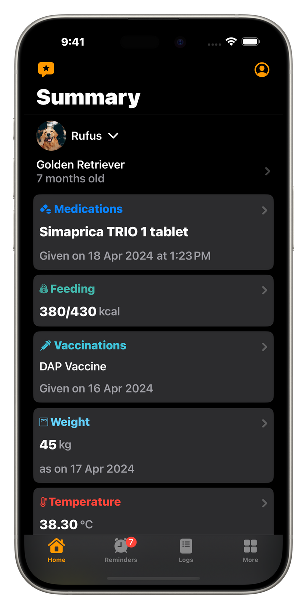 Loving this app just got new puppy love being able to access records on my phone love the section where you can document special occasions for your family pet.
