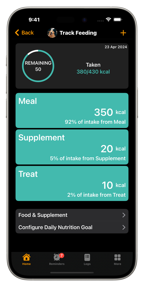 I have been using this app to track my Bernese Mountain Dog’s diet. He needs to lose weight after a long course of prednison. He has a daily calorie requisite. The app allows you to add calorie limit, create a library of all of your pet’s food items, including calories per serving and then select what your pet eats daily. It also allows you to add medicine reminders and vaccine schedules.