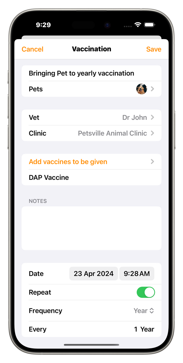 I have been looking for ages to find the perfect app for logging my dogs information and this app is absolutely perfect. I am able to track his worming and flea treatments, his annual booster, his insurance and microchip information, his weight, and food information.